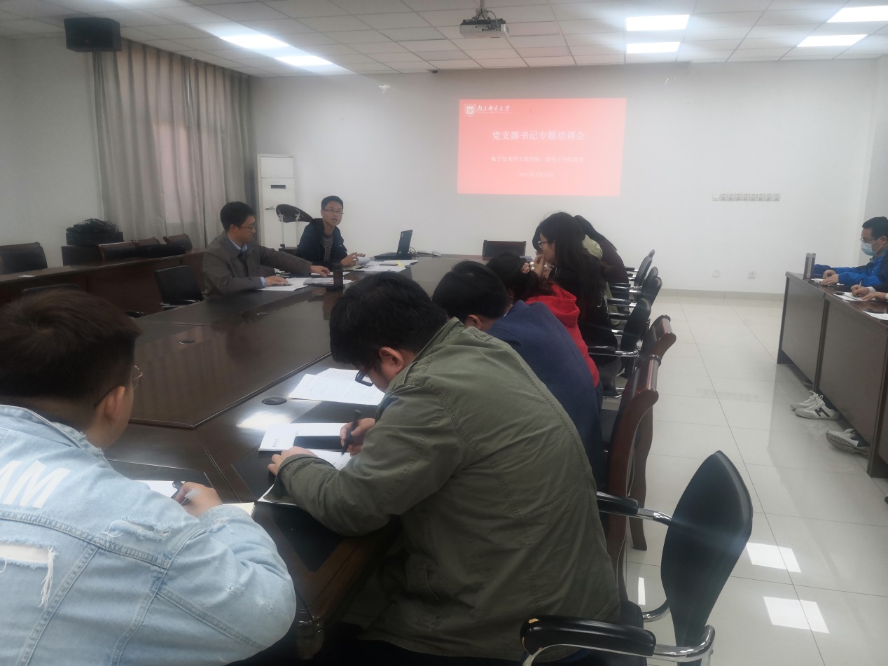 宋健康对《中共百合小说 委员会关于规范党支部“三会一课”的实施细则(试行)》《百合小说 电子与光学工程学院、微电子学院教师政治理论学习制度(试行)》等党务工作制度文件进行了详细解读,并对“三会一课”中支部党员大会、支委会、党课等的工作要求、开展频次等进行了重点讲解,同时结合自己参加校内巡察、巡察整改督查等工作的体会,对支部工作手册记录中常见的问题和与会人员进行了深入交流,对基层党支部存在的一些共性的模糊认识进行了梳理纠正。