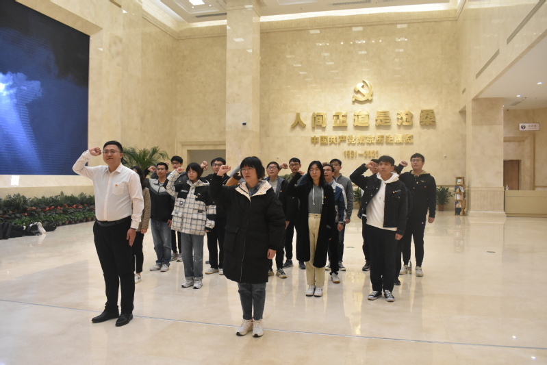 随后,支部全体党员在陈列“人间正道是沧桑—中国共产党南京历史展览”的党史馆一楼大厅,面向鲜红的党旗,在博士第一党支部书记李双德和研究生辅导员李金带领下,庄重高举右拳,重温入党誓词,铿锵有力的誓言响彻党史馆大厅,句句千斤,字字如磐,宣誓着党员“不忘初心、牢记使命、奋发图强、勇于创新”的坚定信念与崇高理想,表达了对党的无限忠诚和崇高敬意。