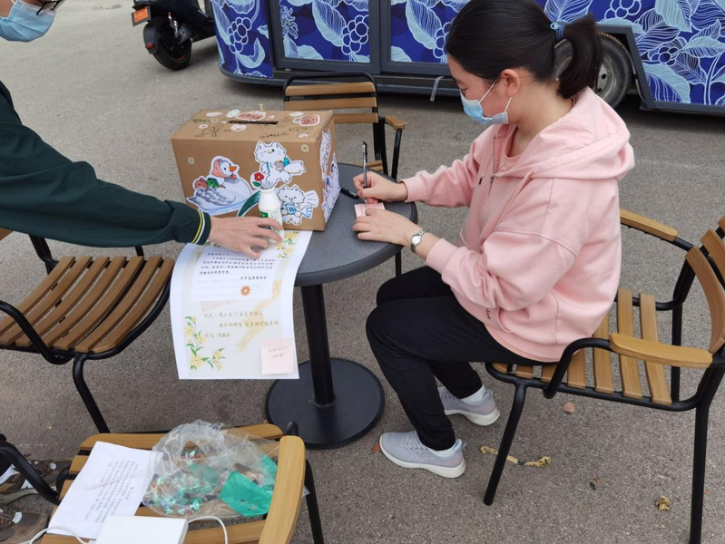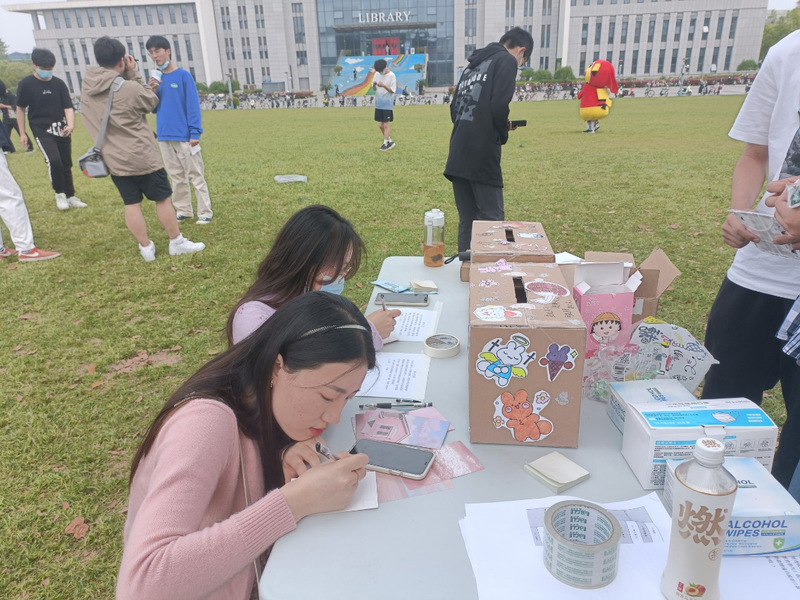 活动前期,青协各部门运用多媒体、公众号等形式进行活动宣传,准备好精美的心愿箱与明信片鼓励同学们的参与,并为每一位参与者准备酒精湿巾、口罩等作为奖励。为丰富活动形式和加强参与度,共设置了四处活动地点:南三食堂入口,菊苑撸猫处(这个地方是不是换个表述比较好?),图书馆大草坪,瑞幸巴士。在相关活动地点,活跃着的卡通玩偶吸引了过往的同学,他们在自助或是志愿者的帮助下写下心中的期待与热爱。经过精心挑选后,部分将制作成祈福牌,挂于校园内,将爱与希望传递于每个人的心间。