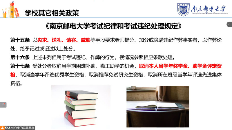 会上,刘心宇老师向同学们阐明了诚信考试的意义。“人无信则不立”,诚信,是一种责任,一种美德,一种力量。接着,刘老师介绍了考试相关政策章程,强调了国家、学校对诚信考试的高度重视。接着,刘老师结合案例为同学们详细介绍了百合小说 关于考试作弊处罚的相关规定,明确了百合小说 对考试作弊“零容忍”“零放纵”的处理态度,她叮嘱同学们在考前认真复习,尽己所能,切勿投机取巧,追悔莫及。