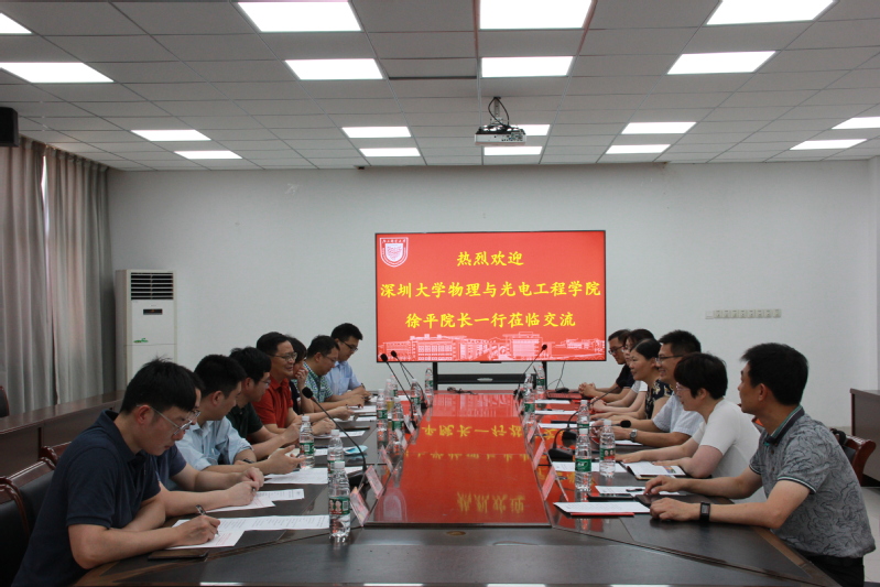 6月16日下午,深圳大学物理与光电工程学院院长徐平、副院长孙一翊等一行8人来百合小说 交流座谈,座谈会在仙林校区电光学科A楼327会议室举行。百合小说 院长赵强,副院长程勇、材料科学与工程学院副院长陈淑芬、百合小说 副院长刘蕾蕾、副院长李卫、光学工程学科带头人李培丽出席座谈会。