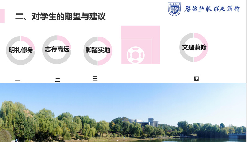 刘振老师对同学们提出四点期望与建议:“明礼修身”“志存高远”“脚踏实地”文理兼修”。这四点建议不仅注重同学们的品德、学习方面教育,更适用于日常及今后的工作、生活等方面,饱含刘振老师对于同学们的期许,令同学们受益匪浅。