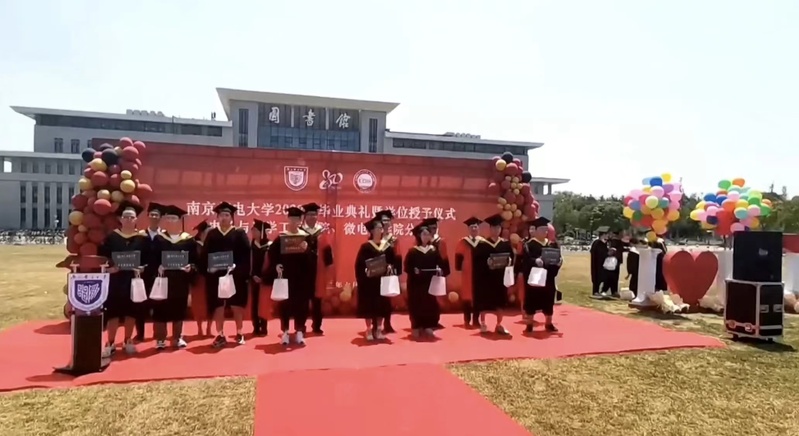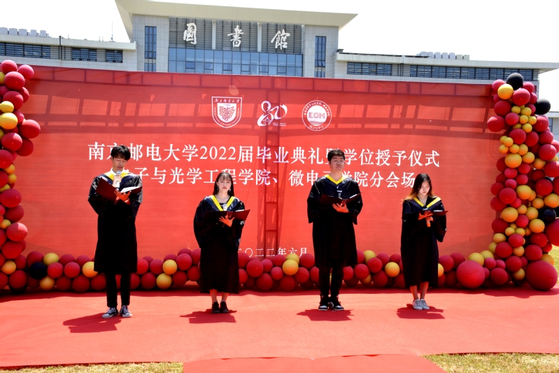 求知路遥,蒙师引领,饮水思源,语短情长。2022届毕业生叶海宁、赵妍、李俊锋、朱月明四位同学代表全体毕业生朗诵了由学院毕业生们集体撰写的《路虽远行则将至——致母校的一封信》。“我眷恋着您,因为那一草一木饱含深情”“我眷恋着您,因为这师生亲友温柔和煦”“我眷恋着您,因为我在南邮恣意生长,在南邮受益匪浅”“我眷恋着您,因为物,因为人,更因为您那傲人的精神与品格”。同学们用最真挚的情感、最动人的声音、最暖心的祝福,告白学校、告白学院、告白青春!