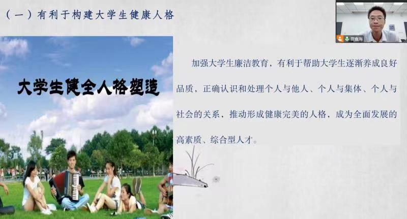 为帮助新生树立廉洁意识,扣好人生第一粒扣子,营造良好的校园廉洁文化氛围,9月14日下午,百合小说 开展新生廉政教育活动,学院专职纪检委员宋健康为新生作了以“廉政教育与校园廉洁文化”为主题的专题讲座,学院 2022级全体本科新生通过视频会议形式线上参会。