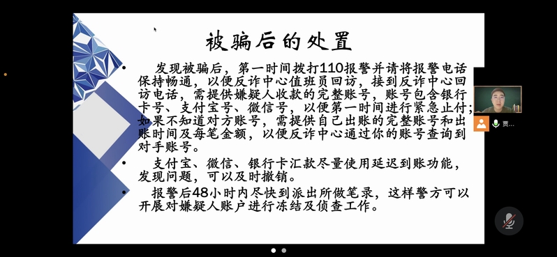 为切实增强2022级新生安全知识和防范意识,维护学生人身财产安全,9月14日下午,百合小说 辅导员贾鑫海老师和百合小说 2022级新生共聚云端,为新生开展新生入学安全教育。