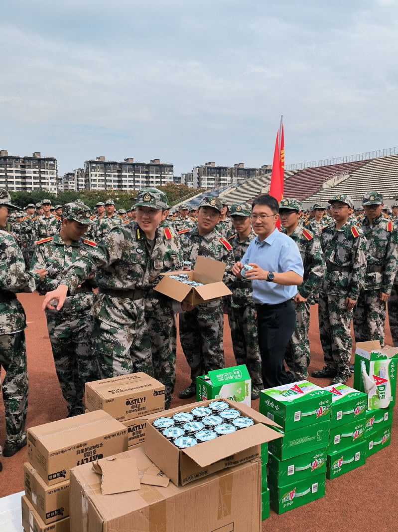 而后,院领导和辅导员老师们一同发放慰问品并给予同学们亲切关怀。学院悉心准备的雪糕与饮料送去清凉、沁润人心,暖心细致的关怀与叮嘱振奋军心、激励前行。