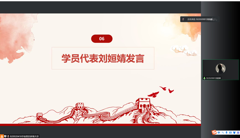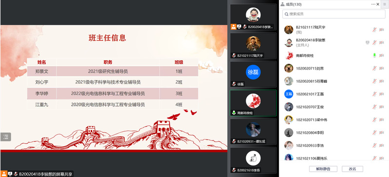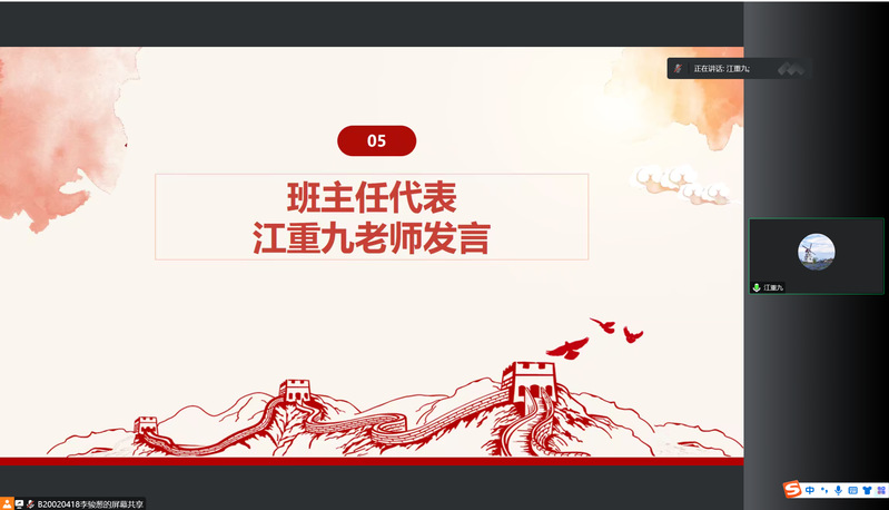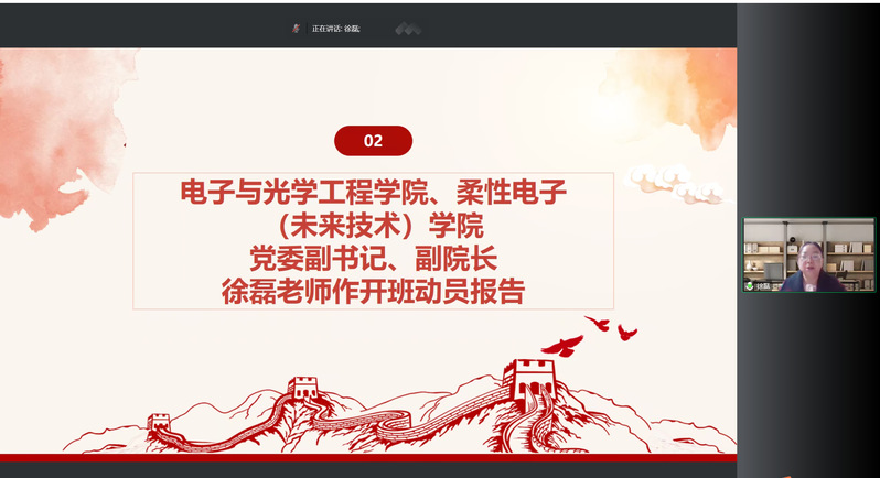随后肖俊桂老师介绍了分班情况并由班主任代表江重九老师和学员代表刘姮婧发言。江重九老师表示同学们应当牢记初心使命,立志科技报国,积极投身建设中国特色社会主义事业的伟大实践之中。刘姮婧同学也提出作为当代青年,我们要肩负历史责任,铭记党的信仰坚定决心,用实际行动报效祖国。