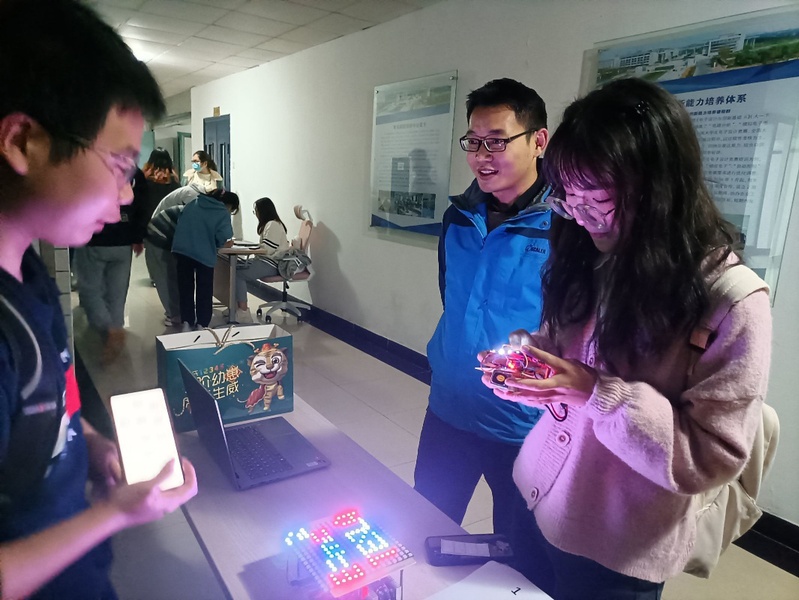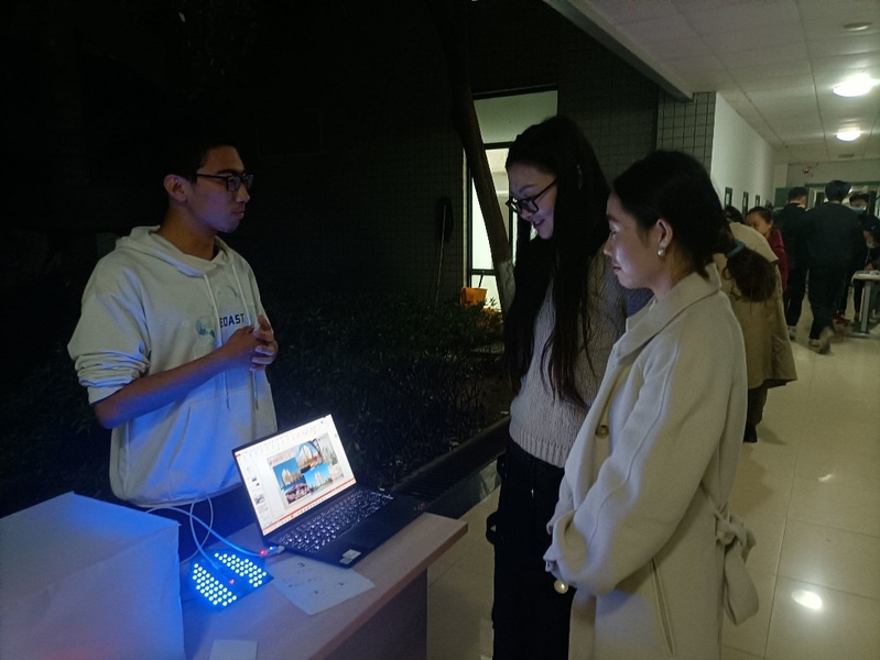 为给同学们提供更充分展示科技成果的平台,吸引更多同学加入到科技制作的队伍中来,11月26日,百合小说 于教三西侧走廊开展了第二十七届“‘芯‘火相传”LED灯设计大赛暨第一届“‘芯灵感应’无线通信大赛作品巡展会。受邀参与本次巡展评审嘉宾的有电光柔院创新中心副主任陈建飞、分团委书记肖俊桂、院科协指导老师刘振、2019级辅导员梁博、强增寿、2021级辅导员赵昱莼。