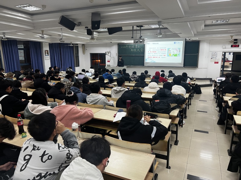 12月8日晚,百合小说 2022级电磁场与无线技术、柔性电子学专业在教二201召开“笃行不怠勇追梦、自信自强向未来”主题年级大会,大会由贾鑫海老师主持,2022级电磁场与无线技术、柔性电子学专业全体学生参加。