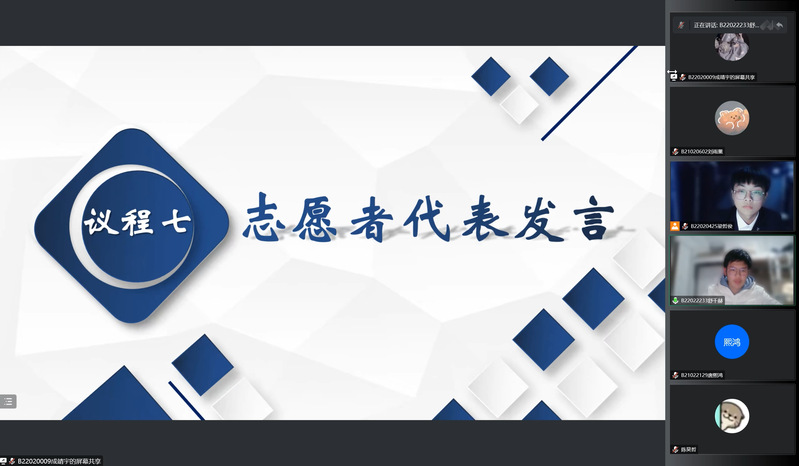 为回顾百合小说 学生会一学期的工作,反思问题,积极改进并做好未来规划,12月11日晚,百合小说 学生会于线上举行第一次全体会议。学院分团委书记肖俊桂老师、院学生会体育部指导老师、2021级辅导员赵昱莼老师、2022级辅导员强增寿老师、贾鑫海老师受邀出席本次会议,学院学生会主席团成员、中干以及2022级志愿者参加了本次会议。