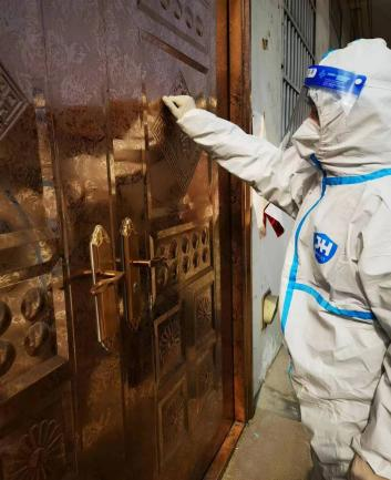 张弛同学在新年后的几天时间里,每天在中午和晚上拜访小区内阳性隔离人员,并为他们提供必要的无接触服务。在每户人家配送完成后,会进行后续的家庭人员情况调查。同时,为了保障住户和自身的安全和健康,他在每次上门配送之前都会消毒、穿好防护服、戴好口罩、橡胶手套,防止病毒的进一步蔓延。