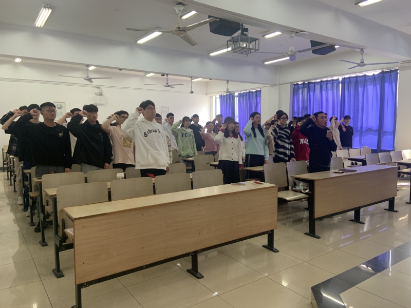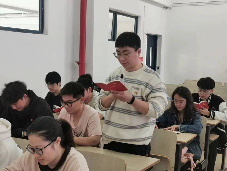接着,祝腾老师领学新《中国共产党章程》。习近平总书记指出,“没有规矩,不成方圆。党章就是党的根本大法,是全党必须遵循的总规矩。”祝老师阐述了党的二十大修改党章的重大意义,提出要学以致用,贯彻落实新精神。随后,梁博老师带领大家重温入党誓词,提醒党员不忘入党初心,坚定共产主义信念,强化共产党员的责任感、使命感,增强党组织的凝聚力和战斗力。