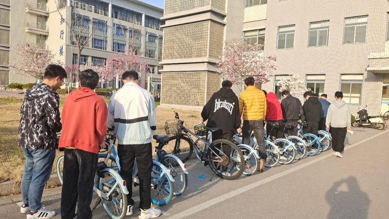 研究生10220205班团支部全体成员对教学楼附近共享单车区的杂乱车辆进行有序整理并进行区域清扫。各支部成员互相协作、齐心协力,认真负责地完成各处的单车摆放清洁工作,为维护校园整洁贡献了力量。