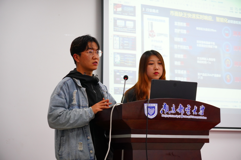 比赛中,每组展示结束后,评委老师针对参赛作品的社会价值、创新意义、发展前景、营销策略、市场预估、团队协作、风险预估等多个方面进行提问和评价,并给出了中肯的建议。