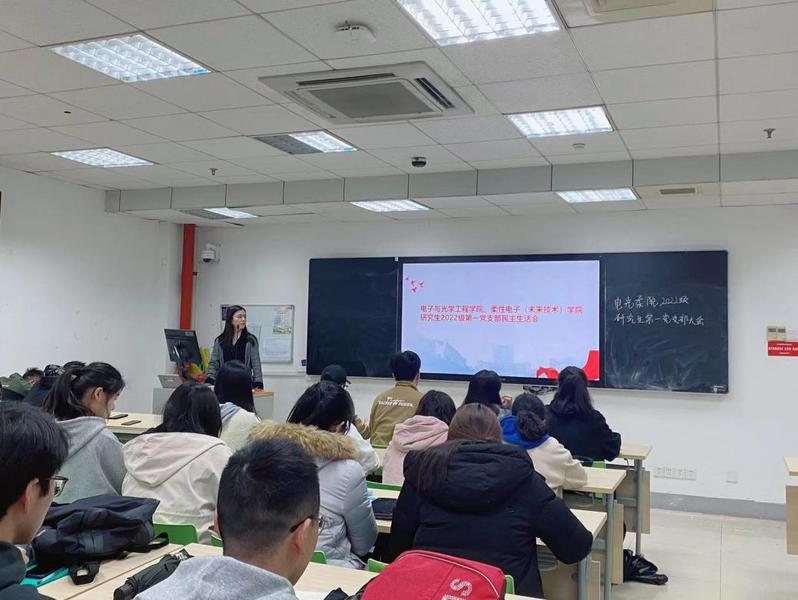 为促进党支部党员交流,查摆支部和党员问题,深入学习贯彻领会党的二十大精神与新修订的中国共产党章程,3月23日下午,电光柔院研究生2022级第一党支部在教2-226(1)开展组织生活会并进行了民主评议党员。会议由党支部副书记沈孝文主持,党支部书记赵雨晨老师和支部全体成员参加生活会。