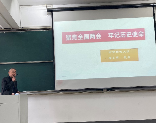 为更好领悟两会精神,3月29日下午,百合小说 特邀校关工委副主任储成祥老师围绕“聚焦全国两会 牢记历史使命”主题作全国两会精神专题学习讲座,学院2022级全体学生干部参加。