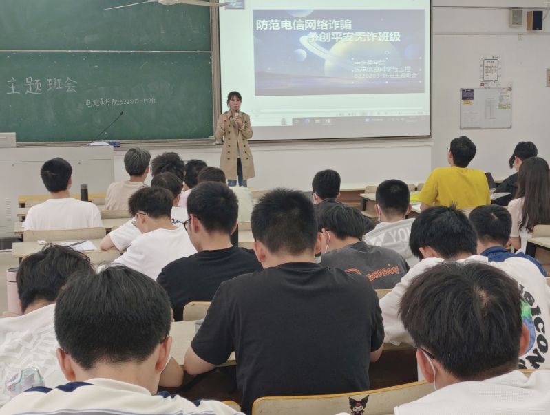 为增强班级学生防诈反诈意识,提高识骗防骗能力,5月11日下午,百合小说 电光柔学院本科光电信息与科学专业2022级B220213、B220214、B220215三个班级的同学齐聚教2-213,开展“防范电信网络诈骗,争创平安无诈班级”主题班会,三个班级全体同学参加了学习活动。