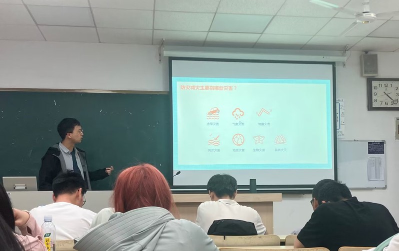 活动中,各班级班长、学习委员、班级安全员成立本次活动小组,向同学们系统地讲述了地震、火灾、洪水等几类灾害的形成原因、灾情特点、应急避险、灾后疏散等知识要点,并通过结合真实案例、观看应急避险视频的方式提高同学们面对灾害时的心理素质以及自救互救的能力。活动采取了互动提问、模拟逃生、现场指导的方式进行,使防灾减灾的意识和技能入脑、入心。最后,贾老师号召同学们防灾要从身边做起,例如及时排查宿舍火情隐患、注意寝室用电安全、严禁使用违章电器等,做到防患未然,平安常在。