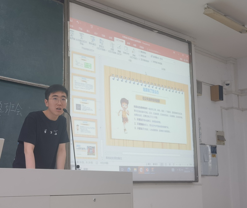 2022级电磁场与无线技术、柔性电子学专业于5月12日以班级为单位开展了“防灾减灾,防患未然”主题活动。辅导员贾鑫海老师和各班班长以班级为单位组织此次活动,全体同学积极参与。