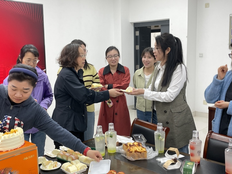 在糕点品鉴环节中,大家偶然得知当天恰逢郑凯鹏老师生日,于是,学院分工会立刻为郑老师现 场举行了庆生会,老师们有说有笑,在轻松愉快的氛围中消除了一天的疲惫。