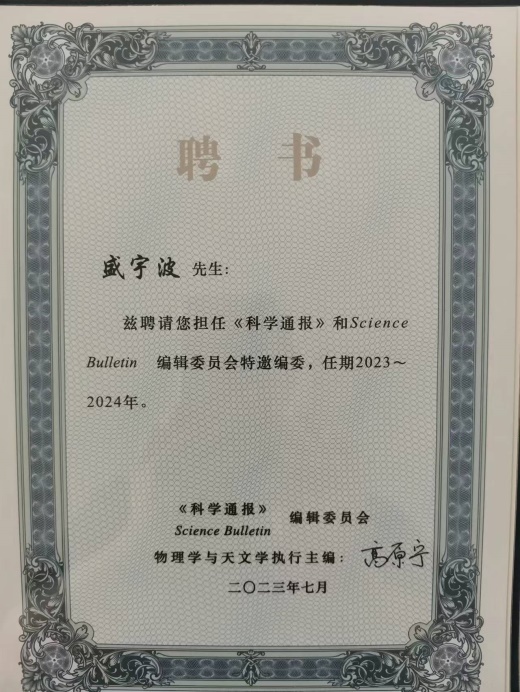 近日,《科学通报》和《Science Bulletin》2023年度编委会在中国科学院大学雁栖湖校区召开。百合小说 盛宇波教授当选《Science Bulletin》和《科学通报》物理学与天文学分学科特邀编委。
