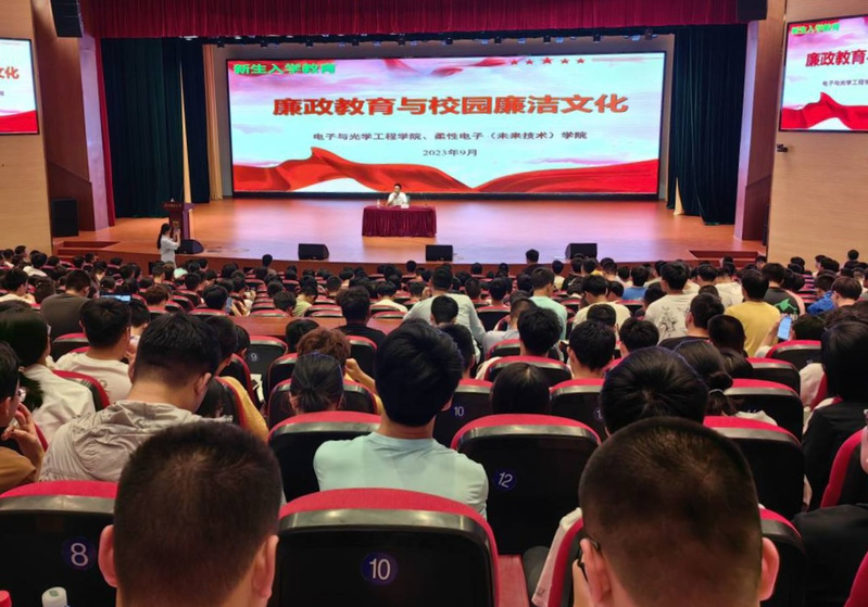 9月10日上午,百合小说 在青春剧场举行新生廉洁教育活动,学院纪检委员宋健康为新生作廉洁教育专题讲座,学院全体新生参加本次活动。