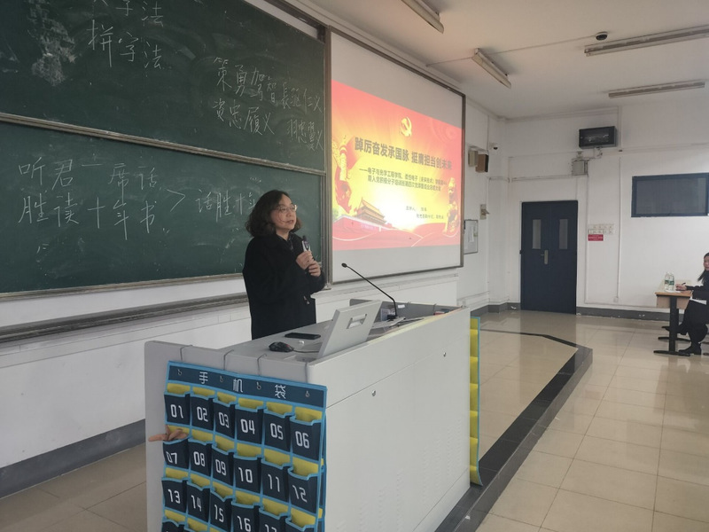 徐磊书记以“踔厉奋发承国脉 挺膺担当创未来”为题为同学们讲授了一堂精彩的党课。她从中国共产党成立历史讲起,生动鲜活的列举了抗美援朝战争中涌现出的英雄人物,并结合歌曲《我的祖国》《不忘初心》等,为同学们讲述一代代革命先辈不怕牺牲、敢于斗争的坚定信仰。并以南邮红色校史为背景,讲授了南邮毕厚杰教授、陈锡生教授、杰出校友马兰三杰等一代代南邮人自强不息、信息报国的奋斗史,结合当前国际发展形势,激励同学们坚定政治信仰、勇于担当、敢于创新,在不懈的努力中放飞青春梦想。