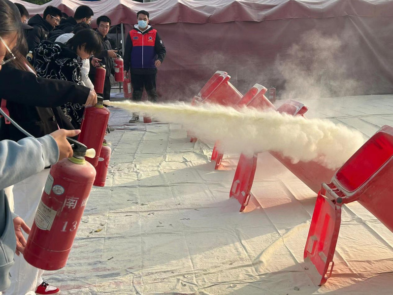 活动伊始,同学们在学院带队老师的组织下以班级为单位进行排队。听从保卫处老师和志愿者们的详细讲解,了解活动注意事项。待班长统计好各班人数后,由带队老师和团支书组织同学们依次进入活动现场。同学们陆续进入消防模拟逃生体验屋进行逃生演练,切身感受火灾发生时的紧急状况,熟知逃生方式。最后同学们在志愿者的带领下依次学习了灭火器的使用。