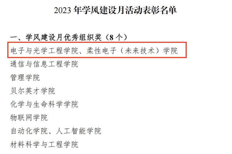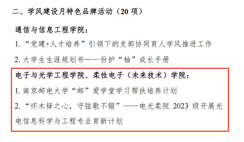 经学院积极组织申报,学生工作部审核差额评审,百合小说 荣获“学风建设月优秀组织奖”;“百合小说 ‘邮’爱学堂学习帮扶培养计划”、“‘怀木铎之心,守弦歌不辍’——电光柔院2023级开展光电信息科学与工程专业育新计划”两项活动荣获“学风建设月特色品牌活动奖”;祝腾、梁博两位辅导员老师荣获“学风建设月优秀指导教师”称号;10个班级荣获“学风建设月先进班级”称号;123位同学荣获“学风建设月先进个人”称号。