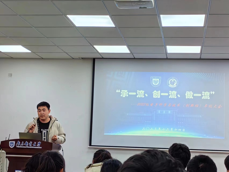 12月14日下午,百合小说 2023级电子科学与技术(创新班)在电光楼B322召开了“承一流,创一流,做一流”主题班会暨年级大会。会议由辅导员强增寿老师主持,学院党委副书记、副院长徐磊,班主任王龙禄副教授参加了本次会议,会议还邀请了霍程阳、李梦竹、李静文、殷葳楠、孙宁五位优秀学长学姐进行学习和生涯经验分享。