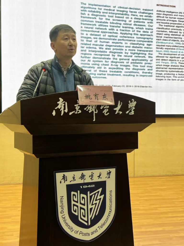 姚育东教授首先介绍了人工智能的应用与前景,以医学领域为例,提出人工智能在数据不足情况下的良好表现,引出三个问题“什么是人工智能”、“为什么是人工智能”、“为什么现在那么火热”,为同学们描绘出了一副广阔的人工智能版图。