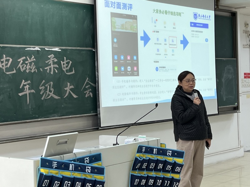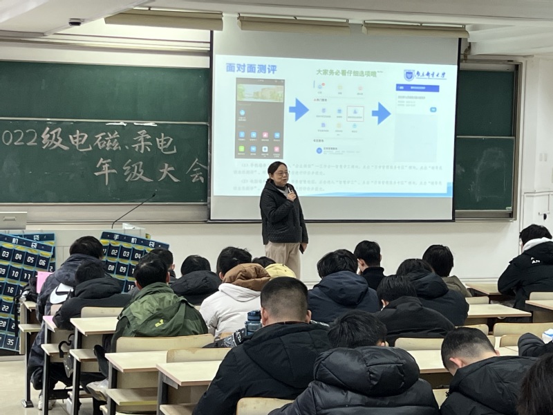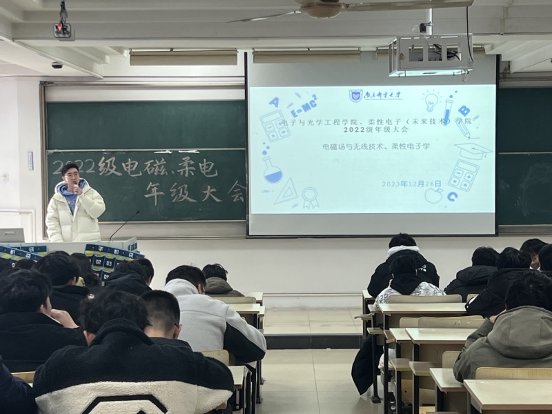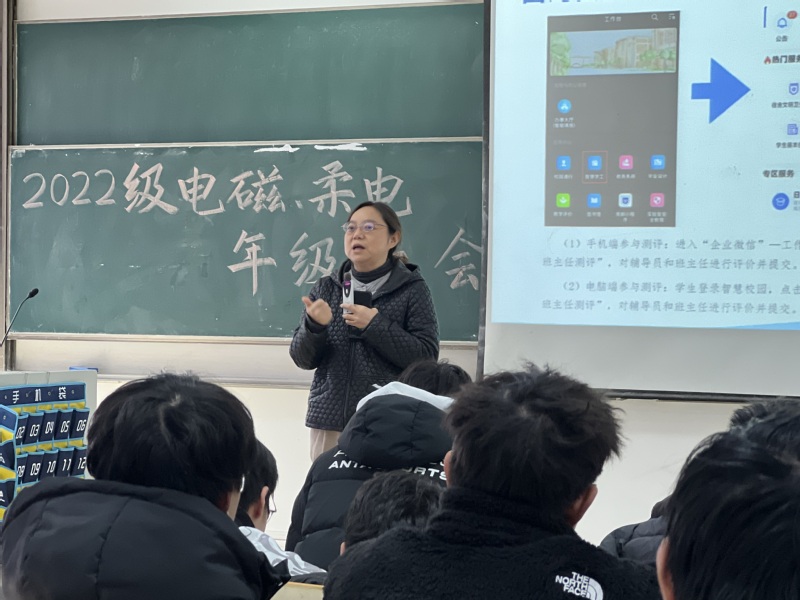12月26日下午,百合小说 2022级电磁场与无线技术专业、柔性电子学专业在教2-401教室举行“反复淬火,百炼成钢”主题年级大会,学院党委副书记、副院长徐磊老师出席本次大会,辅导员贾鑫海老师主持,全体同学参会。