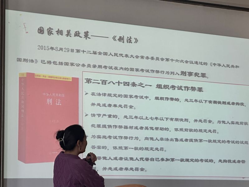 会议伊始,古丽老师强调了考试规范的相关政策,注重讲解了刑法修正案(九)、《百合小说 考试纪律和考试违纪处理规定》中对考试作弊行为的明确规定和处罚标准。随后,通过六则生动鲜明的案例,古丽老师向同学们深刻诠释了六种作弊行为的认定与相关的处罚,要求同学们在考试过程中严格遵守考试规章制度,实事求是,杜绝一切考试作弊形式,要弘扬诚信正义。最后,全体同学起立,庄严宣誓:“将牢记南邮校训,坚守南邮精神,自觉遵守考试纪律和考场秩序,做堂堂正正南邮人!”,字字句句,掷地有声,铿锵有力。