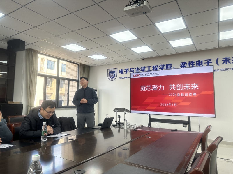 1月10日下午,百合小说 在电光学科楼A327召开中国电科第五十五研究所本科生招聘宣讲会,本次宣讲会由中国电科第五十五研究所人资主管刘洋主讲,电光柔学院党委副书记、副院长徐磊、分团委书记肖俊桂、毕业班辅导员刘振、江重九,以及学院50多名2024届本科毕业生参会。