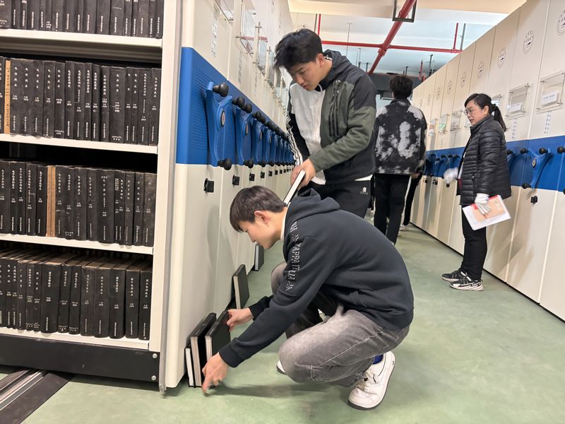 本次活动共分为两个环节,分别是整理书库与参观党建书籍阅览室。首先30名学生志愿者分成两组,分别前往密集书库和库房整理图书。在图书馆老师的现场讲解和培训下,同学们顺利完成了书籍的分类、整理和维护工作为图书馆的有序运行贡献了力量。劳动实践环节结束后,志愿者们由冯主任带领前往三楼社会科学图书阅览室参观了党建专题书架借阅了相关图书,修身养志、涵育心灵。