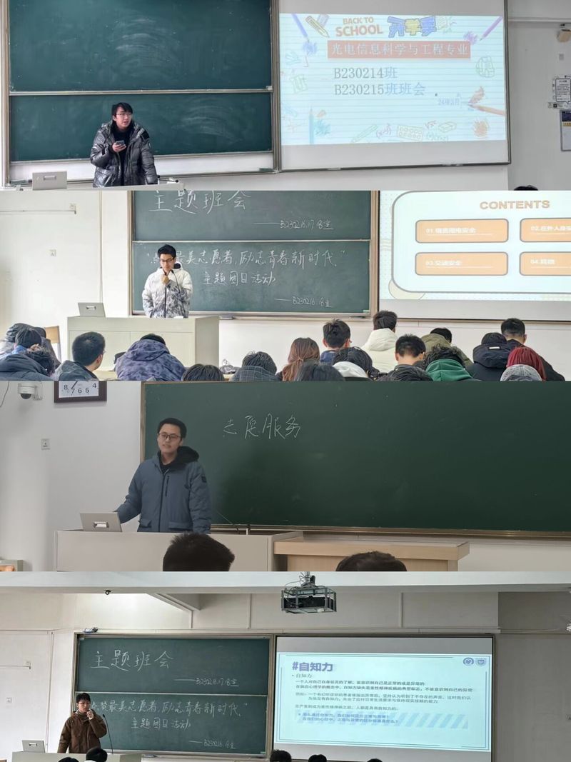 为推进落实“时代新人铸魂工程”,加强大学生思想政治教育,提高同学们的安全防范意识,3月,百合小说 2023级光电专业以班级为单位陆续开展了“开学第一课”主题班会。