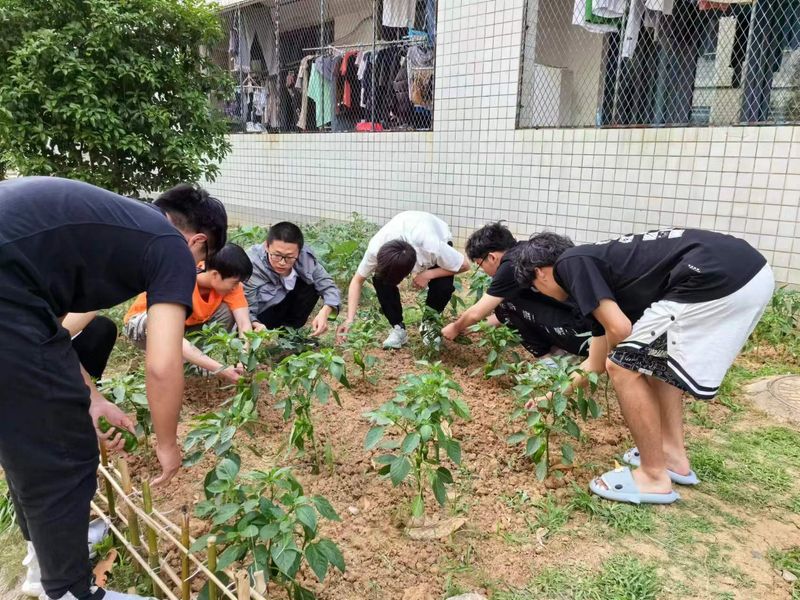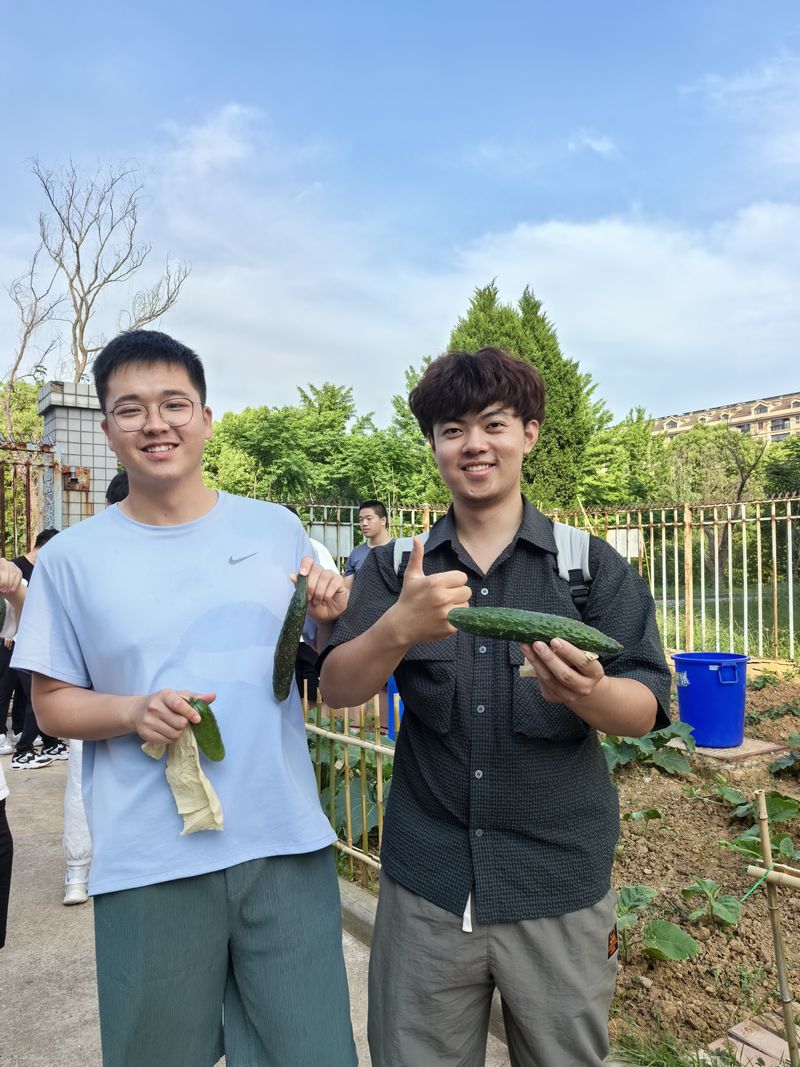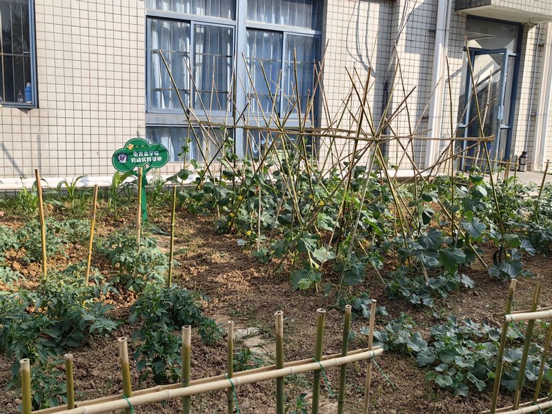 近日,宿舍苑区里由宿管阿姨们、老师同学们亲手种植养育的作物悄悄成熟了,清甜的黄瓜、翠绿油亮的青椒等,一派丰收喜悦的景象。