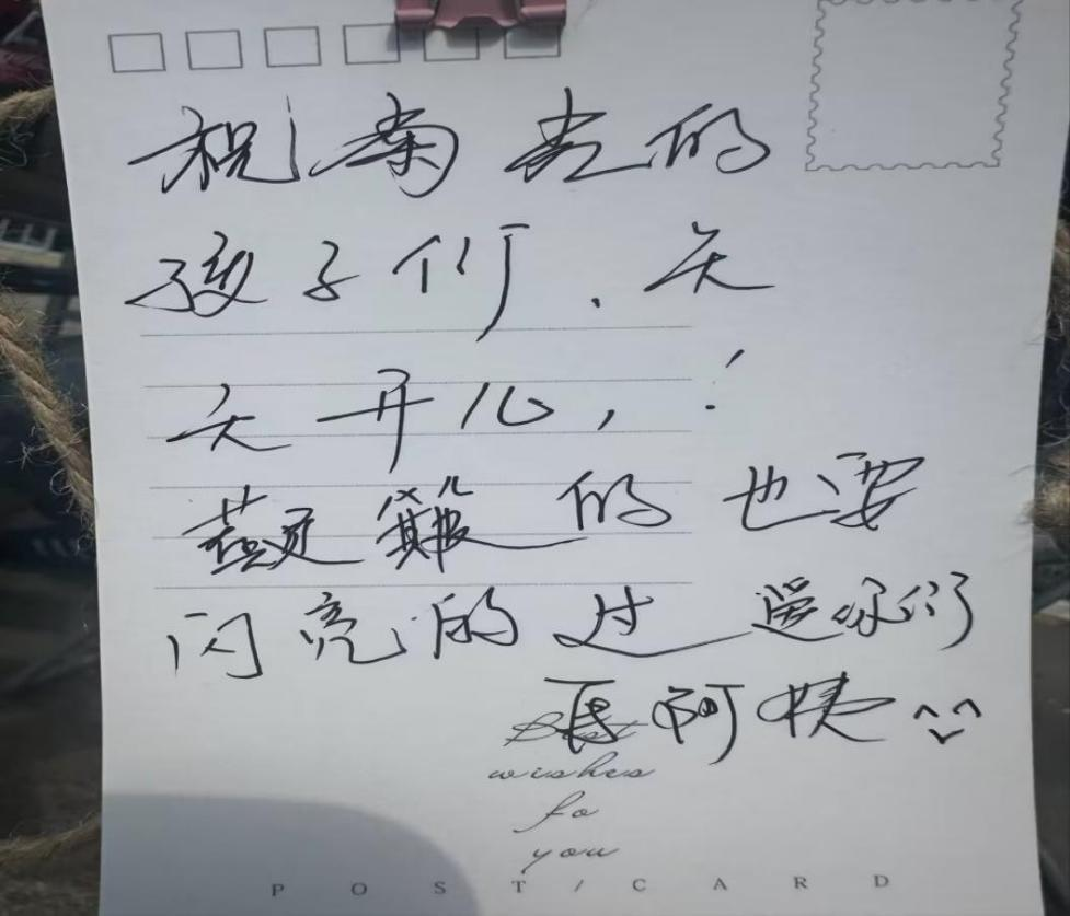 在这些明信片中,有人留下了对他人的祝福:“满怀希望就会所向披靡,希望你能够勇敢做自己”,希望我们能永远少年,走在奋斗的道路上,做新时代朝气蓬勃的大学生。也有人表达对自己未来的期许,希望自己成为更优秀的人。