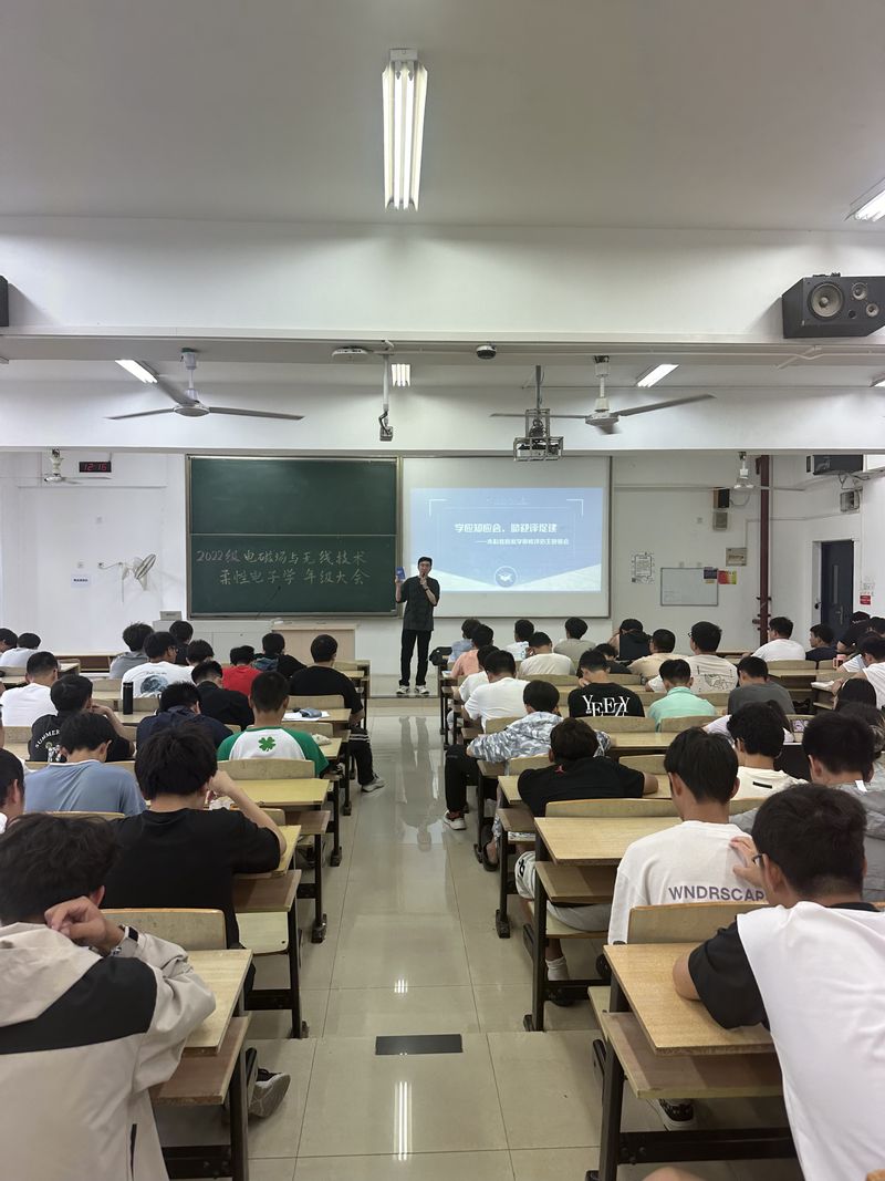 为进一步推进“启思·明德·砺学”主题教育活动,切实做好教育教学审核评估评建工作,持续推进学风建设、校园文明建设、班级日常建设等, 6月5日,百合小说 2022级电磁场与无线技术专业、柔性电子学专业在教3-412召开年级大会。会议由贾鑫海老师主持,全体学生参加。