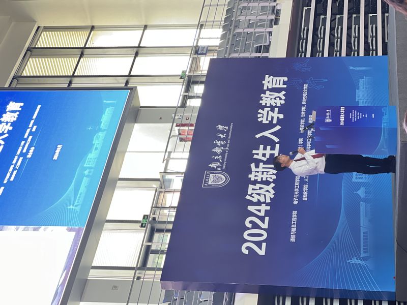 新生见面会后,学院举办了一场优秀学子事迹分享会,中国青少年科技创新奖获得者万宝飞和第十八届“挑战杯”全国大学生课外学术科技作品竞赛国家级一等奖获得者眭钧阳向新“柚子们”分享自己在南邮四年本科间满满的“干货”。万宝飞学长带领团队提出近零折射率定向传播技术,为解决困扰学界多年的学术难题提供理论指导,发表多篇高质量SCI论文,并且获得国际同行的认可。曾荣获全国大学生年度人物、中国青少年科技创新奖、中国大学生自强之星等多项荣誉。眭钧阳学长,曾作为独立第一作者在国际高水平期刊发表SCI论文多篇,以第一作者身份出版一本学术专著,研究工作多次被国际知名学术媒体报道。作为项目负责人斩获第十八届挑战杯国家级一等奖并荣获校长嘉奖令,主持国家级大创项目以优秀结题。获评江苏省优秀毕业生,第七届百合小说 年度人物,2023年百合小说 “创新标兵”,江苏省“浦芯精英”奖学金等荣誉。