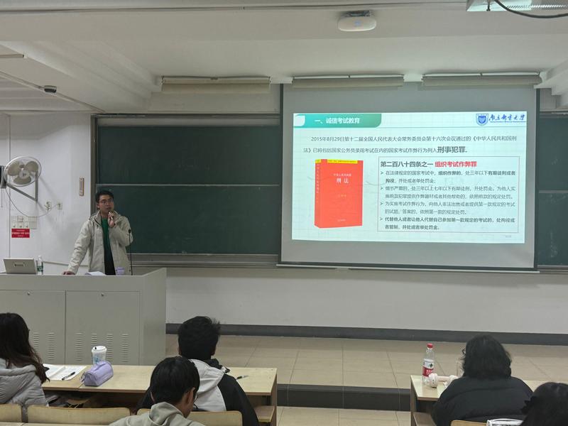 随后,会议进入了诚信考试教育环节。刘振老师详细阐述了诚信考试的意义和重要性,他强调,考试不仅是对知识掌握程度的检验,更是对个人品格的考验。他要求同学们在考试中严格遵守考试纪律,杜绝任何形式的作弊行为,以真实的成绩展现自己的实力。