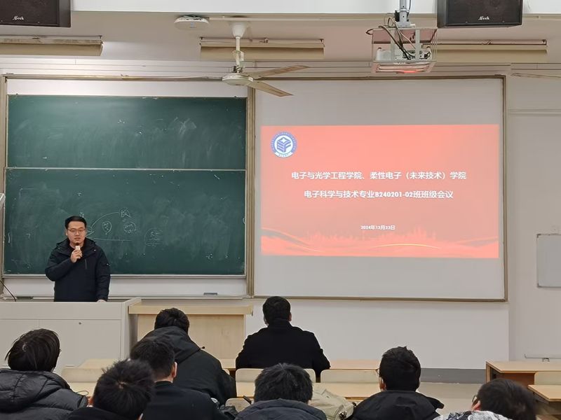 12月23日晚18:00,学院电子科学与技术专业2024级B240201、B240202班在教学楼3-303召开班主任会议,会议由班主任孙树将老师主持,两个班级全体成员参加,学校高层次人才王龙禄副教授受邀做“科研启蒙”主题讲座。