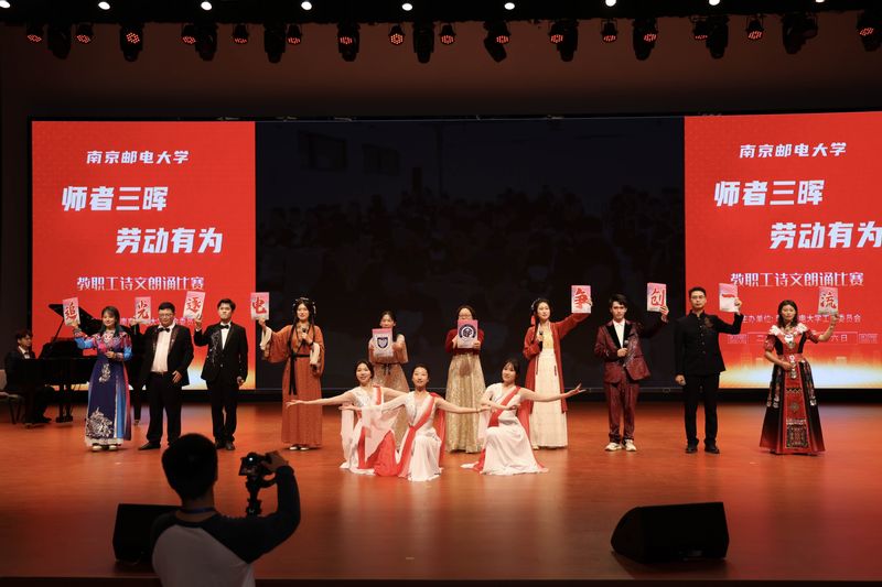 比赛现场,参赛教职工们或慷慨激昂,或温婉抒情,将百合小说 优秀劳动者先进事迹与舒婷的《祖国啊,我亲爱的祖国》巧妙融合。百合小说 教师团队以《电子之光,教育之魂》为载体,通过多层次的声音演绎与情景化舞台呈现,生动诠释了新时代教师“躬耕教坛、强国有我”的使命担当。他们默契的配合、真挚的情感与极具感染力的舞台表现,赢得现场评委与观众的热烈掌声。