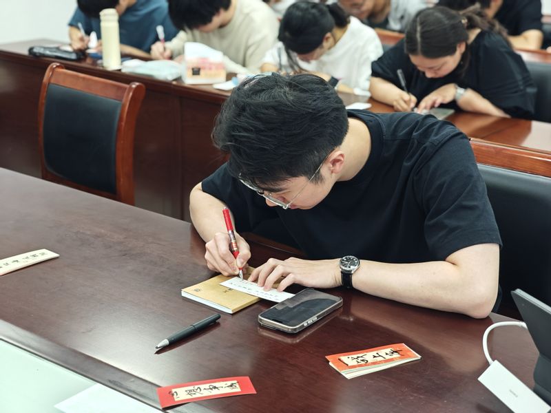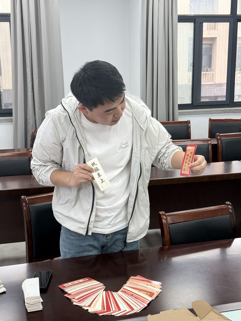 在这个充满希望与温情的日子里,电光学科楼内一场意义特别的活动悄然开展。百合小说 电光柔学院本科生第二党支部全体党员与辅导员老师们5月8日齐聚一堂,用手中的笔、心中的情,为即将踏上考研征程的同学们书写祈福书签,传递温暖与力量。