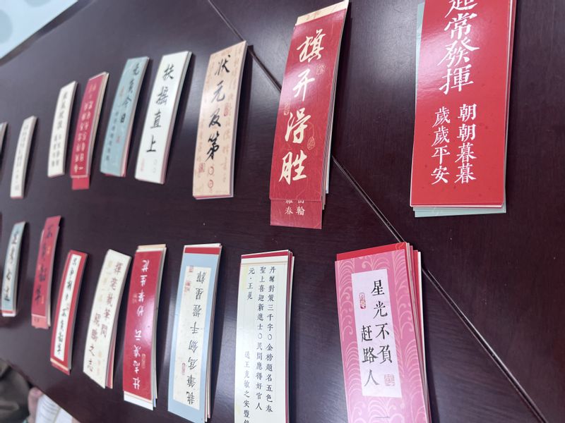 活动现场,同学们与老师们围坐在一起,精心挑选着一张张精美的书签。这些书签,承载着对考研学子满满的祝福与期许。随后,他们拿起笔,在书签上认真地书写着一句句暖心的话语。这些话语来自于每位考研人制定了座右铭,“先努力优秀,再大方拥有”“披星戴月走过的路,终会繁花遍地”“知足且坚定,温柔且上进”……每一笔、每一划,都饱含着真挚的情感;每一句话、每一个字,都寄托着美好的祝愿。