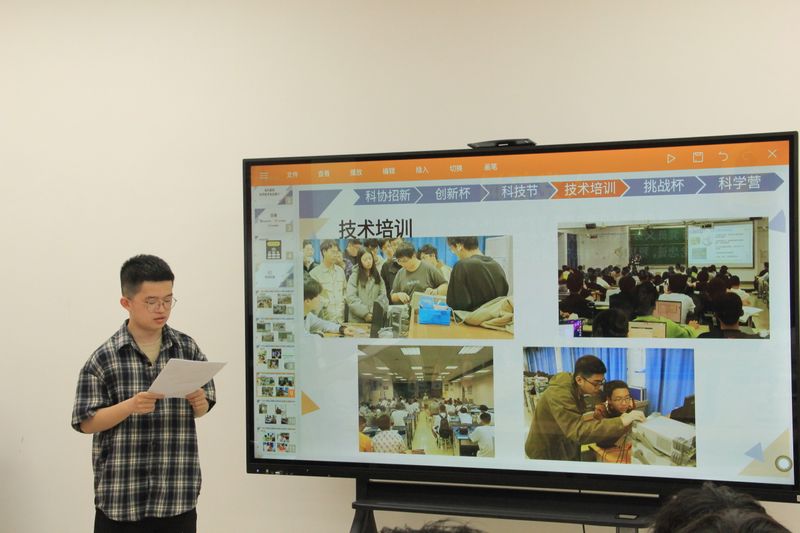 在主席团工作汇报环节,主席团成员依次发言,系统回顾了科协过去一学年在活动策划、执行管理、资源整合及团队协作等方面取得的成果。他们通过详实的数据与案例,展现了科协在学术竞赛、科技创新、校内外合作等领域的工作亮点,并针对现存问题提出优化建议,为下一阶段工作指明方向。