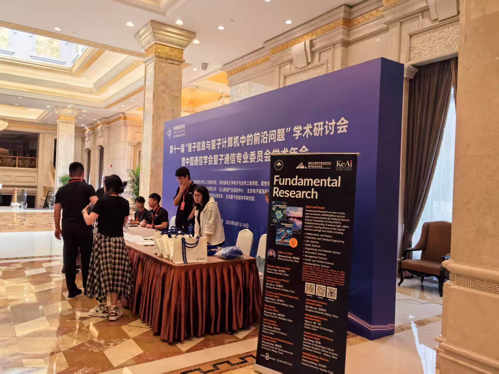 本次会议特别邀请了中国科学基金会、《中国科学》期刊团队以及中国物理学会的编辑莅临现场,他们的参与为会议增添了浓厚的学术交流与知识传播氛围。他们在会议现场精心设置了国产期刊展示专区,全方位陈列了《中国科学:物理学 力学 天文学》《中国科学:信息科学》、《科学通报》《Fundamental Research》《Frontiers of Physics》《Chinese Physics B》、《Chinese Physics Letters》等期刊。编辑老师热情地向参会者介绍期刊的发展历程、办刊理念与特色栏目,重点推荐了近年来发表的一系列量子科技领域的高质量论文。这些论文涵盖量子计算算法创新、量子通信协议优化等前沿方向,不仅展示了我国科研人员在量子领域的卓越成果,也彰显了国产学术期刊在推动学术交流、传播科研成果方面的重要作用。通过与科研工作者的面对面交流,期刊团队还广泛收集了对论文评审、发表流程等方面的建议,旨在进一步提升期刊质量与影响力,更好地服务于量子科技领域的学术生态建设。