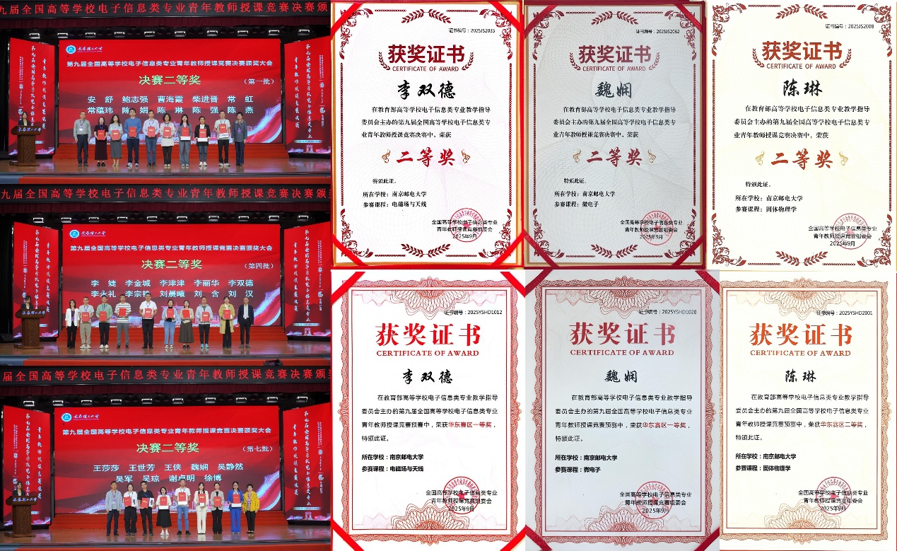 9月21日,第九届全国高等学校电子信息类专业青年教师授课竞赛决赛在长春理工大学落下帷幕,南邮百合小说 (以下简称“电光柔学院”)副院长刘蕾蕾教授带队参赛,学院青年教师李双德、魏娴、陈琳均获全国决赛二等奖。在预赛华东赛区中,李双德、魏娴老师获一等奖,陈琳老师获二等奖,徐艳卉、薛琛鹏老师获三等奖。