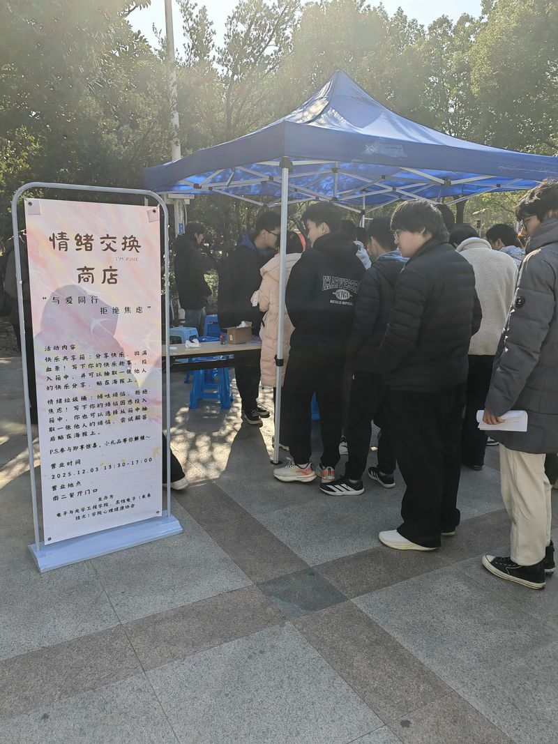为营造关注心理健康、互助成长的校园氛围,12月3日下午,百合小说 心理健康协会在南二食堂门口成功举办了“情绪交换商店”主题心理活动。该活动以创意互动为载体,为同学们搭建起一个自由抒发情感、交换心声的开放式平台,在初冬校园中播撒下关怀与理解的种子。