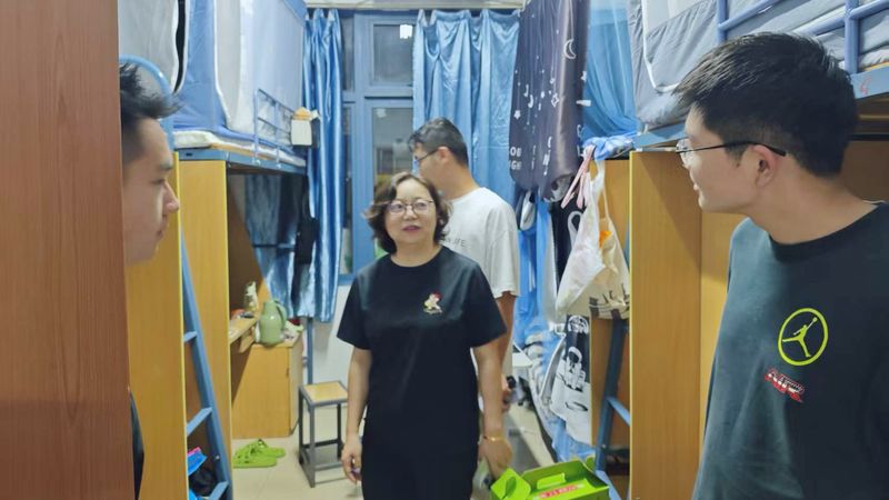 走访过程中,徐书记与老师们与同学们进行了亲切交流,详细询问了大家的假期生活、返乡见闻及返校行程,细致了解了同学们在学业、生活等方面的适应情况与存在的实际困难。徐书记鼓励大家要及时调整状态,收心归位,合理规划时间,以饱满的热情和昂扬的斗志迎接接下来的学习任务。老师们贴心的话语和殷切的关怀,让同学们倍感温暖,宿舍内气氛融洽,笑语不断。